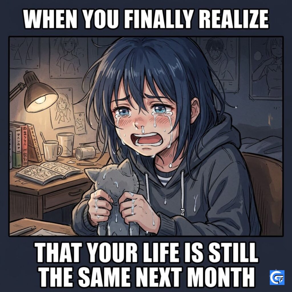 When words fail, anime tears say it all. These crying meme templates capture heartbreak, overthinking, and those “I’m fine” moments perfectly. From dramatic sobs to silent tears, every reaction hits deep and funny at the same time. Perfect for expressing emotions you didn’t know you had.