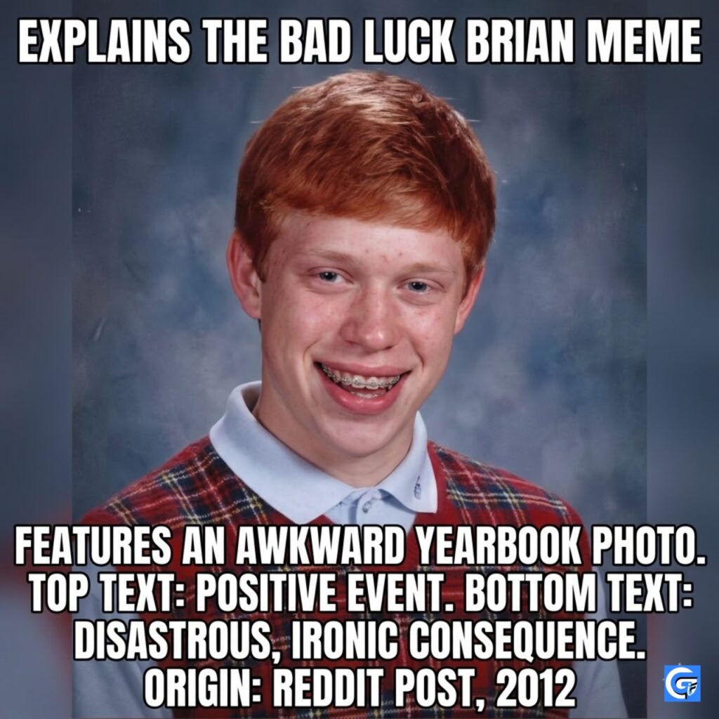 Some people have bad days… and then there’s Bad Luck Brian. This iconic meme perfectly captures those painfully awkward, unbelievably unlucky moments we all secretly relate to. From failing simple tasks to winning the worst outcomes, it’s comedy at its finest. If life ever feels unfair, Brian’s got a meme for that.
